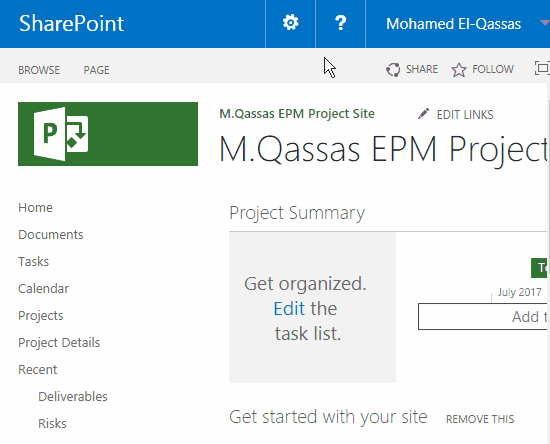- Below Site collection with Project Web App (PWA), check your PWA instance URL.