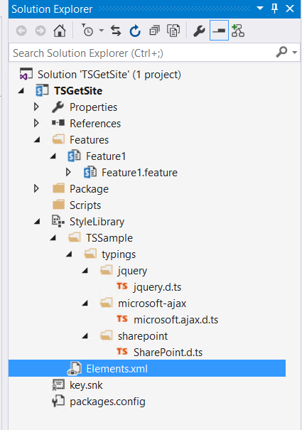 To test the functionality, add JavaScript file reference to the page and test it. TypeScript file will not be referred to anywhere in the project.