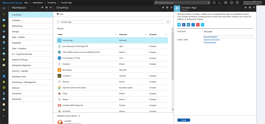 Create Function app, if it’s not created already. The screenshot is given below of the app creation.