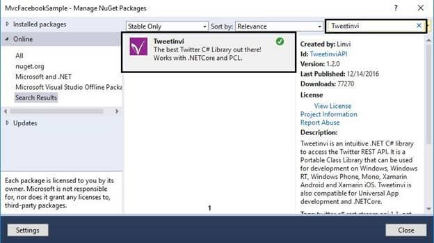 Install TweetInvi library from NuGet Package to share the video on Twitter.