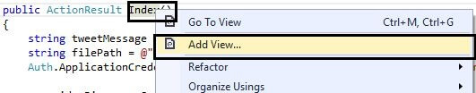 We can create a new SocialShare controller in our MVC Web Application. Open the Index method in the SocialShare Controller.