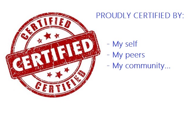 OK. So if I'm not totally in love with your run of the mill 'churn it out' certification, how then do I propose that the good people of the tech community (among others) prove their worth? ... simply, they should certify themselves.