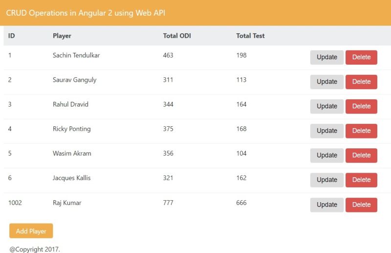 Now, let’s add a cricketer component and give reference of service and model class.