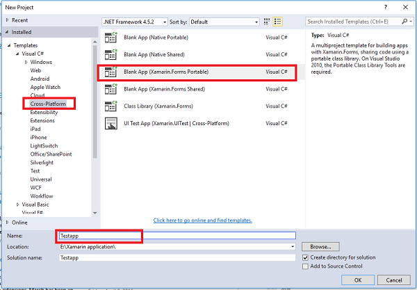 Open Visual studio and create an Application. Select new project, then cross-platforms, Blank App (Xamarin.Forms Portable) and enter project name (as figure 1).