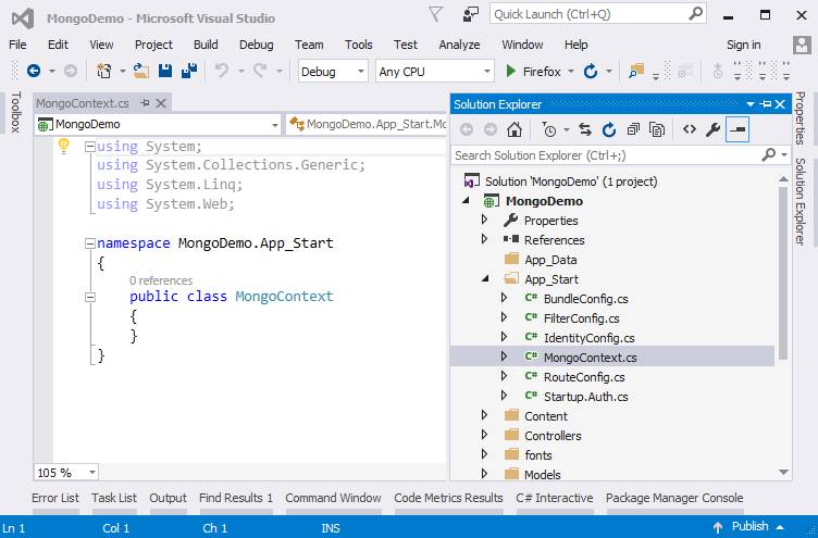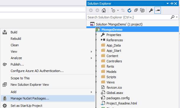 In this part we are going create a class with name MongoContext in App_Start folder.