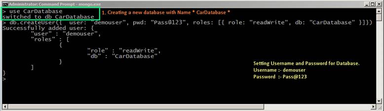 After we have created database next step we are going to set credentials for this database such that application having valid credentials can only access this database.