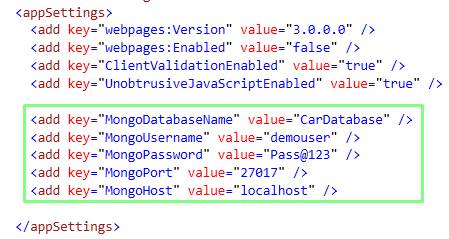- <add key="MongoDatabaseName" value="CarDatabase" />