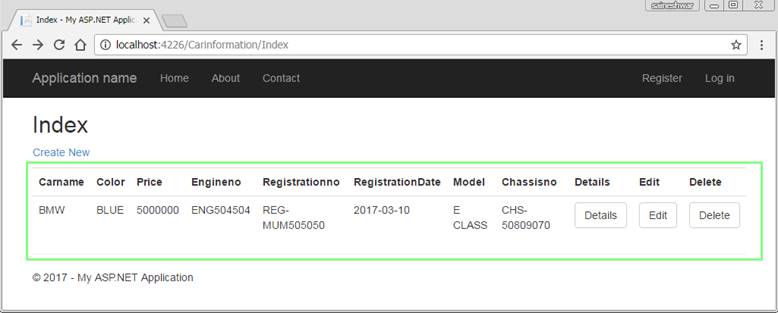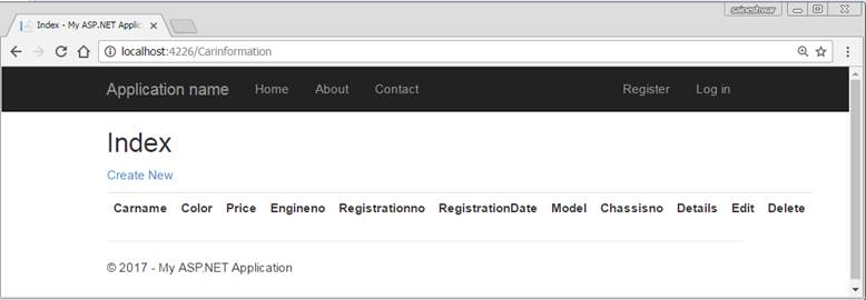 After running the application, just access this URL: - http://localhost:####/Carinformation/Index