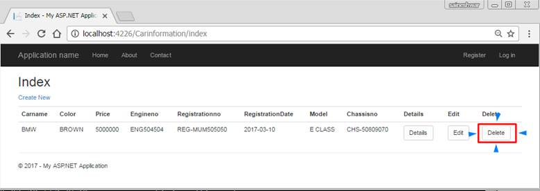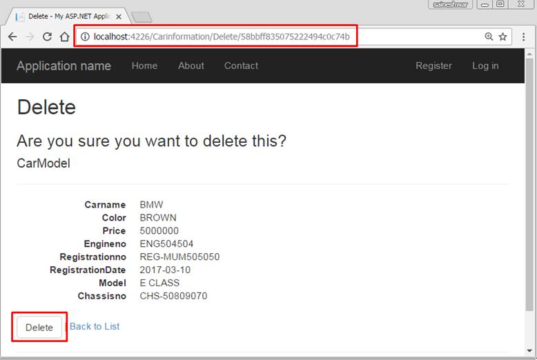 Now we are able to see Delete View but we cannot delete record because we have not added Delete Action Method which will handle HTTP post request Let’s add it.