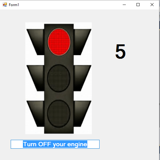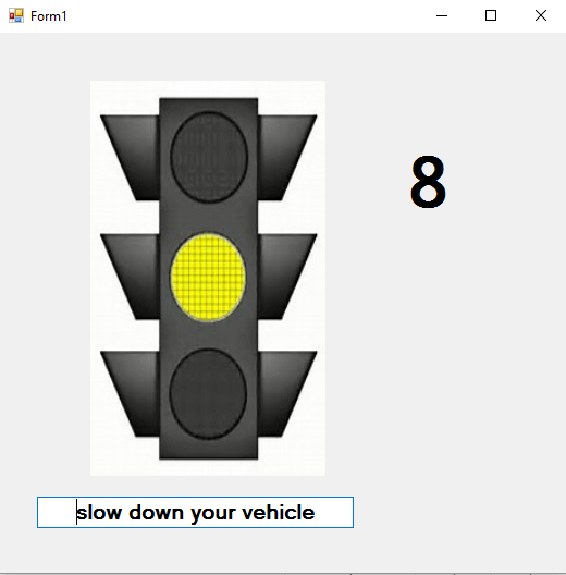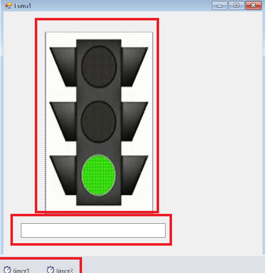 After placing the controls in the right place inside the windows form and applying the below given code into the controls we could get the running traffic signal application without any errors.
