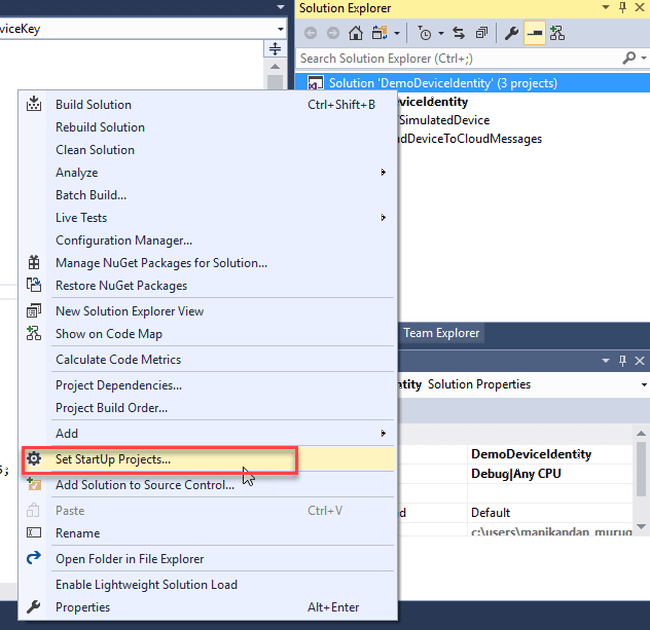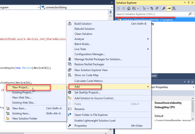 Again, in the same project, add the new console application and name the application as DemoSimulatedDevice. Press OK to create the program.Now, our Solution Explorer consists of three projects.