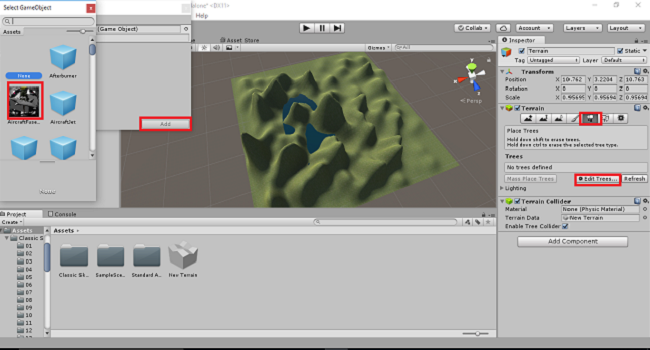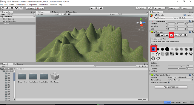 First, you have to open the Unity project. Classic skybox and Assets store can be added in your project. Select the brush tool and go to Edit textures. Select the grass hill textures. The texture is applied on the terrain.