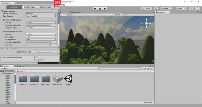 The Skybox is added into the inspector. Click on the red marked symbol.