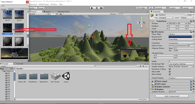 Select another sky texture. The sky will be added. It can be displayed into the camera preview.