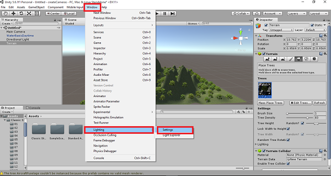 Select Window menu in the menu bar and go to Lighting >> Settings option.