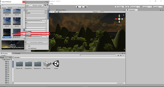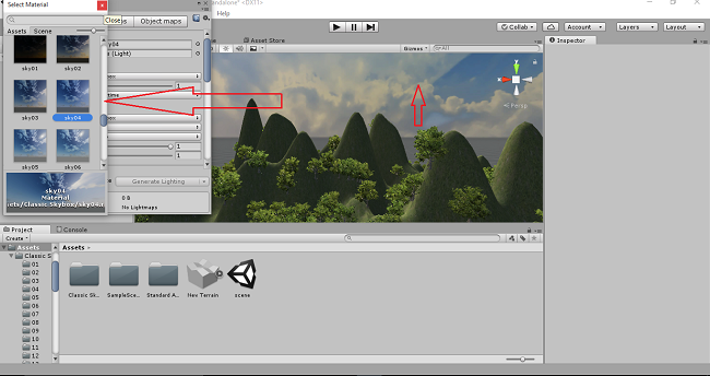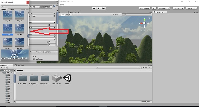 The skybox assets will be displayed. Select the sky09 texture to add in your Scene View.