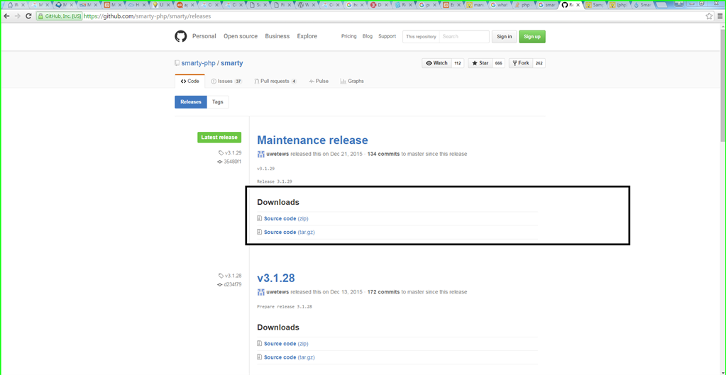 Click source code and download Smarty framework. When downloading is complete, then downloading folder extracts and copies the Smarty folder, which is put into the xampp->htdoc folder.