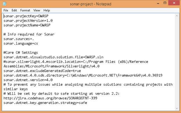 - sonar.dotnet.visualstudio.solution.file=OWASP.sln