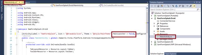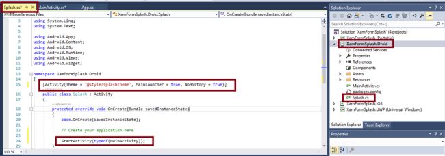 - [Activity(Theme = "@style/splashTheme", MainLauncher = true, NoHistory = true)]
