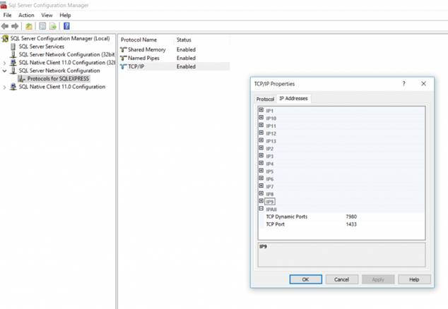 To check the status of these services, you can always go to Services by running services.msc in Run command window. Once you are done, you need to enable some protocols and assign a port to it. Now, go to your SQL Server Configuration Manager. Most probably, you can find the file in this C:\Windows\SysWOW64location, if you can't find it in Start window.