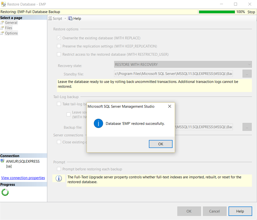 Now, we are going to Restore a Full Database Backup Using SQL Server Management Studio. For that follow the steps.