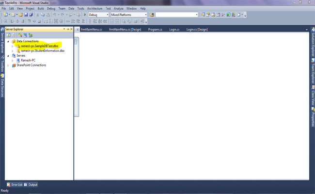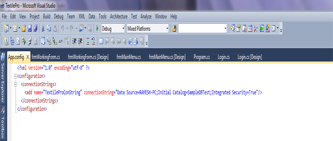 - SqlConnection con = new SqlConnection(ConfigurationManager.ConnectionStrings["TextileProConString"].ToString());