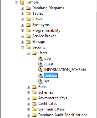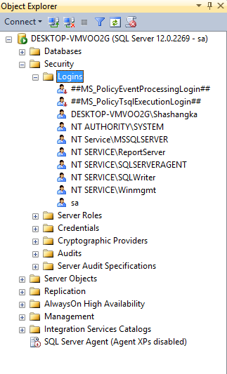Let’s disconnect our default user “sa”, to login with our new user, “shekhar”