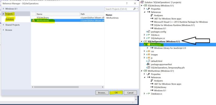 After you are done with adding Runtime Component, we have to add Class Library for SQLite.