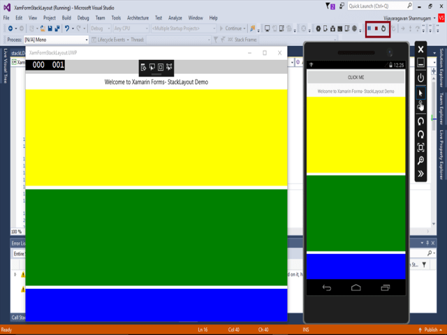Now, you have successfully created and tested your StackLayout in Xamarin Forms application in cross-platform application using Visual C# and Xamarin.
