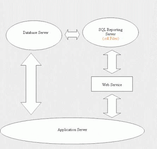 The above Diagram shows a simple architecture of a web scenario in which we have a Database Sever which is communicating to your Application Server. In addition we have a SQL Reports Server which contains the all the layout of the Reports i.e. your .rdl files along with the Database configuration.