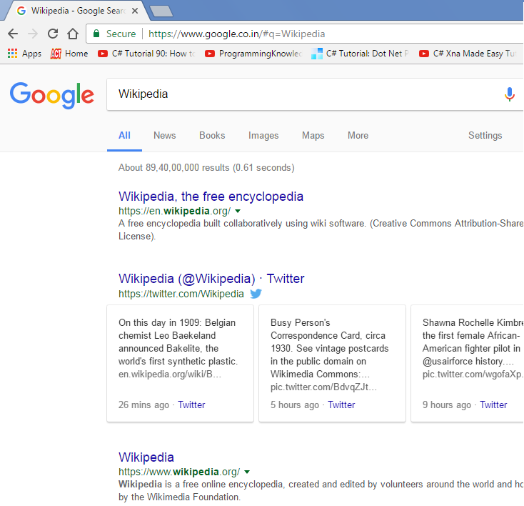 From the above figure, the entered value that is Wikipedia is highlighted in the Browser's URL.