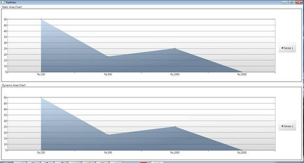 Create 2 Group boxes with different header names for static and dynamic chart respectively. The first header will contain a chart with an area series with item source, IndependentvaluePath and DependentvaluePath property.