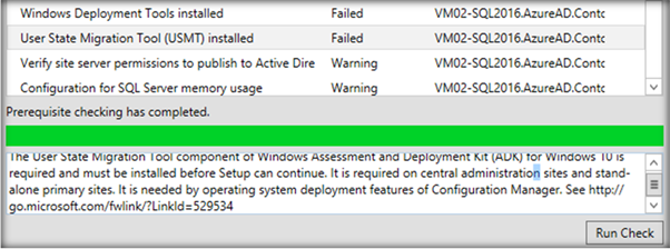 This will start the prerequisite check. Ensure that there are no errors. We can skip the warnings after checking for the severity. If there are errors we will have to resolve them before proceeding.