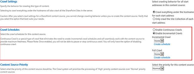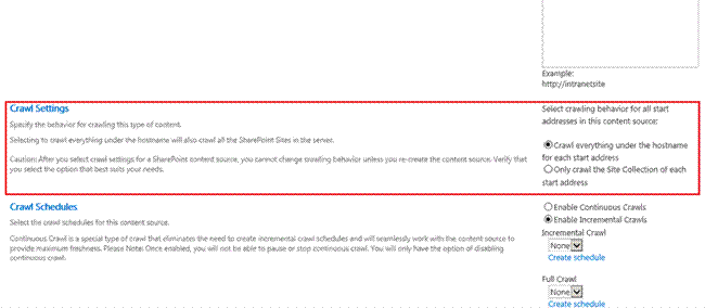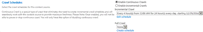 1. To create Full and Incremental Crawl, select the “Enable Incremental Crawl” radio button under Crawl Schedules.