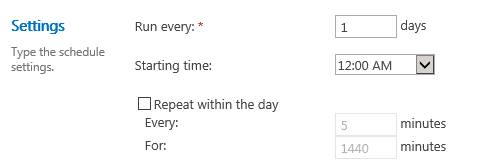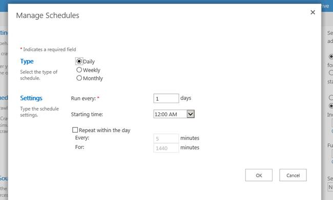 8. Select the type of Full Crawl, like Daily, Weekly or Monthly schedule.
