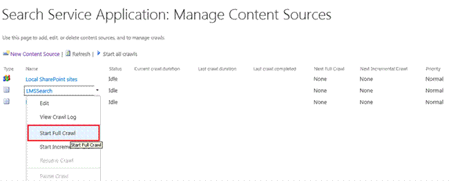 1. Once done with the steps above, please start a full crawl by clicking on the content source.