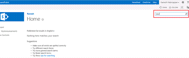 1. Go to the SharePoint site which we have added/created the content source and enter some text in the search box.