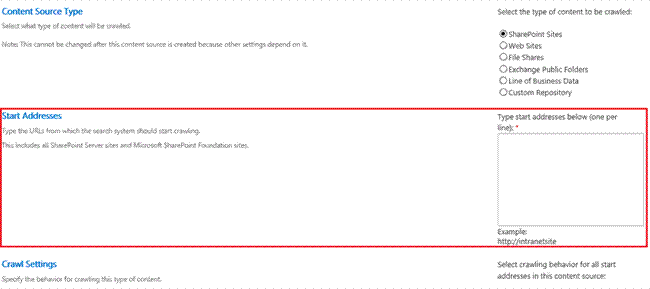 9. Based on the above selection type, fill the settings values. Click "OK" to create the Full Crawl.