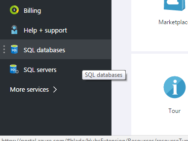 From the left panel as you can see, you can select the service that you want to use. For this discussion, I will simply use a SQL Server Database, which means I will be required to have SQL Server. So, either way, you create Server first or create database first, and then create server along the way.