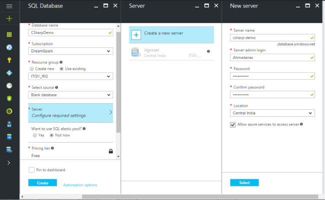 Fill in the relevant details in text boxes. You will realize that there is one more option for Server configuration that I am configuring along the database creation, as shown in the image.