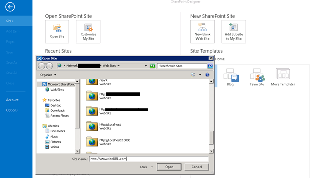 - Open newly created SharePoint site in SharePoint Designer.