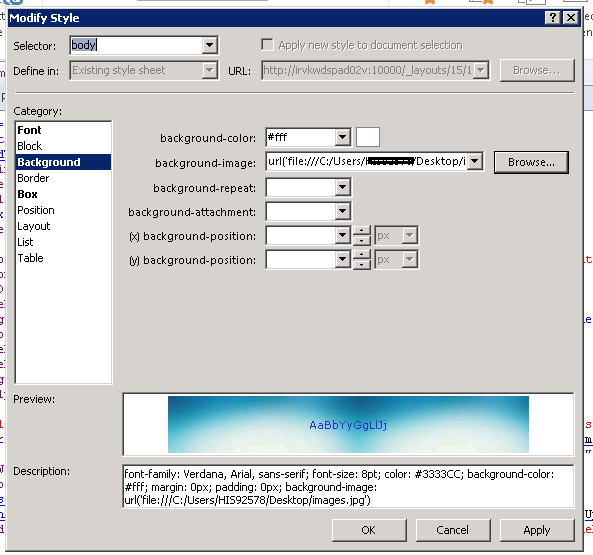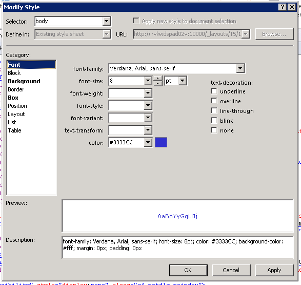 - From the Category menu, we can change the appearance of the body like font, background, border, layouts etc. After completing the style changes, click OK to apply the changes.