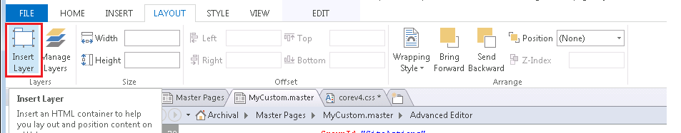 - To insert a new layer in the master page, go to Layout tab -> Insert Layer.