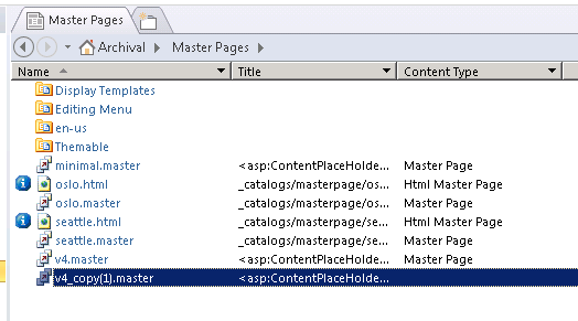 - To create new master page from already existing master page, copy v4.master file and paste it. It will create v4_copy(1).master.