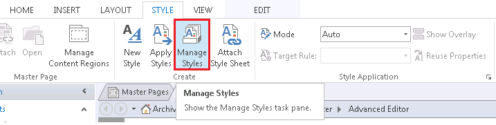 - To modify the style of the master page, click Style -> Manage Styles.