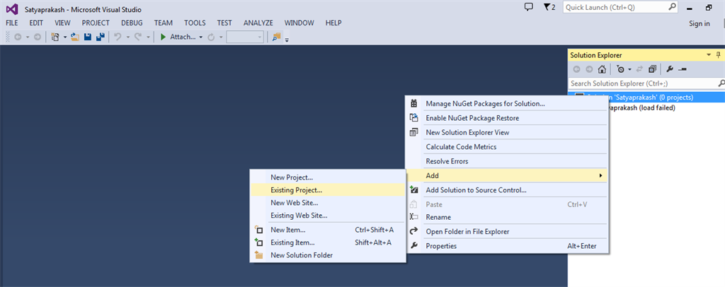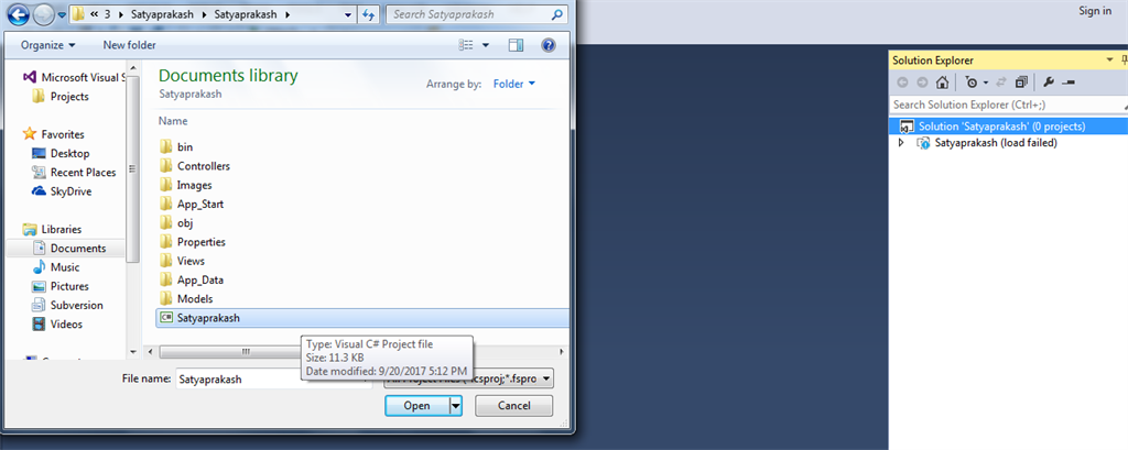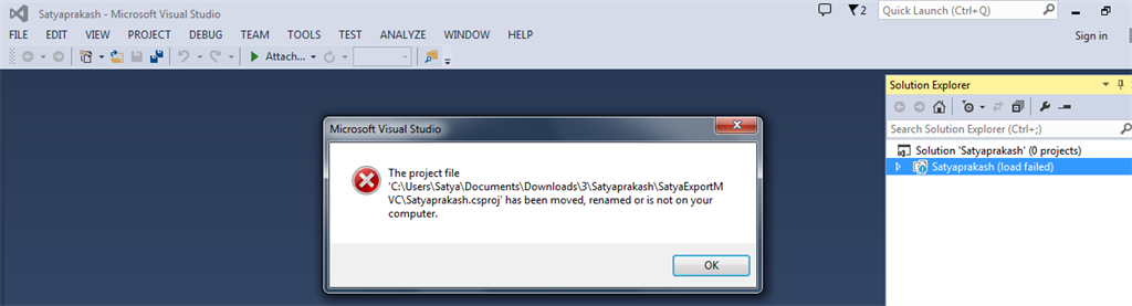 Issue DescriptionI created one Mvc application named "SatyaExportMVC". Then I will rename to Satyaprakash of Project name and Solution file name.