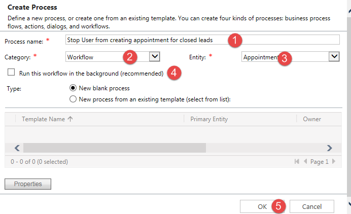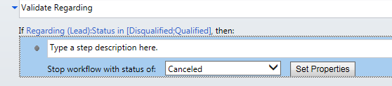 Set Properties button and write “You can’t create Appointment for Closed Leads” under value text box.