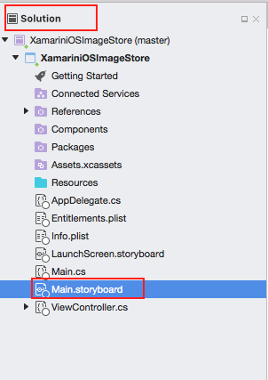 Subsequently, go to the solution. In there, you get all the files and sources of your project. Now, select Main.storyboard and double-click to open the Main.storyboard page.