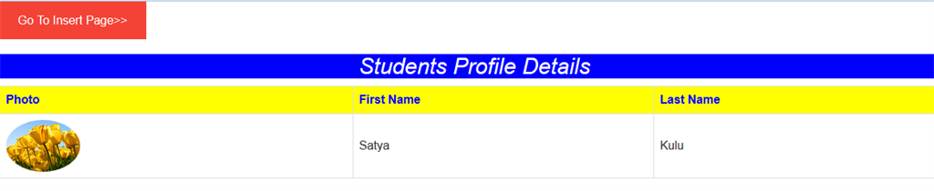 Code Description- Here, the table will show the First name , Last Name, and Images from the database.