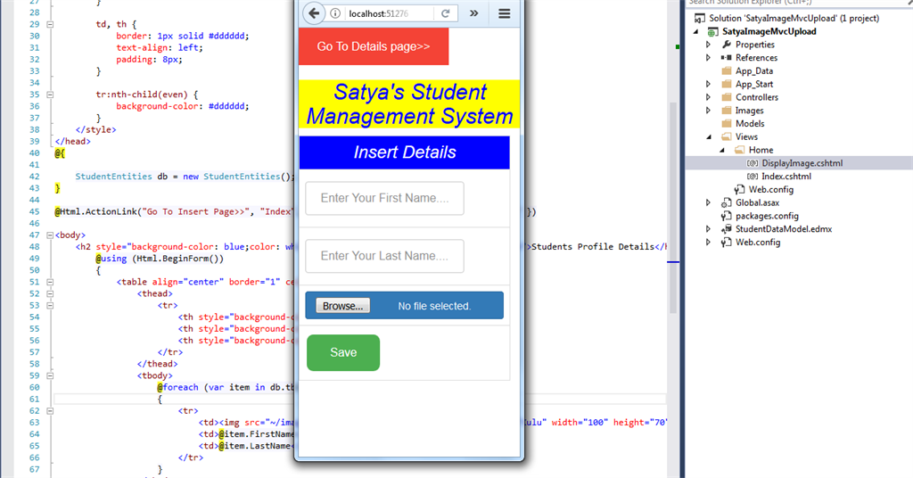 Here, I will show you how image details can be shown along with the username. Let's take a sample example of student management system in MVC and Bootstrap.